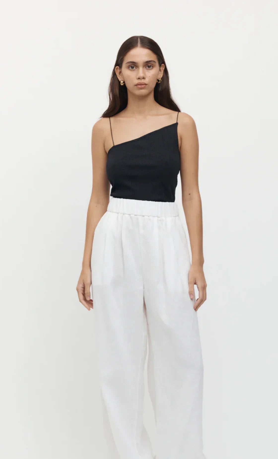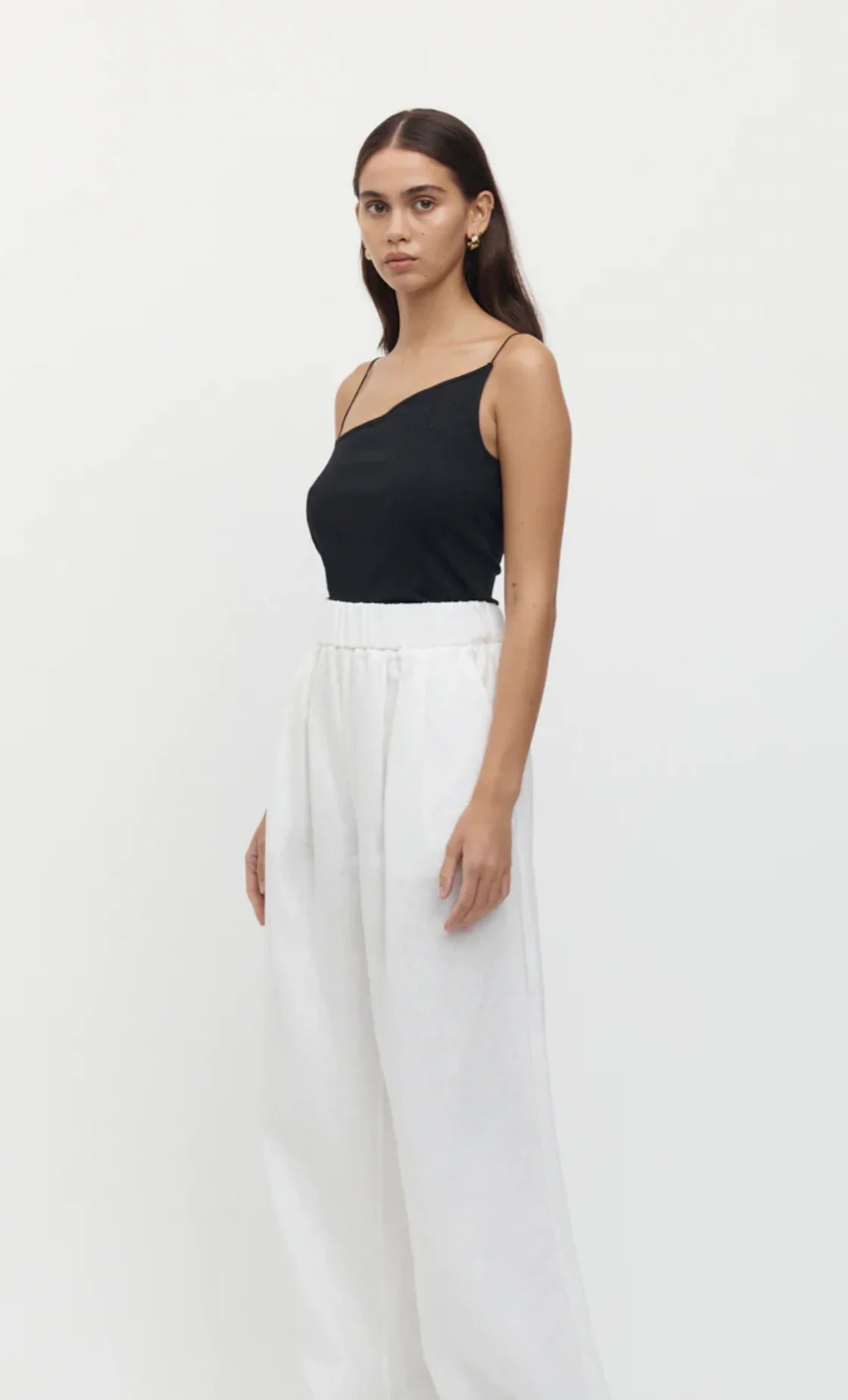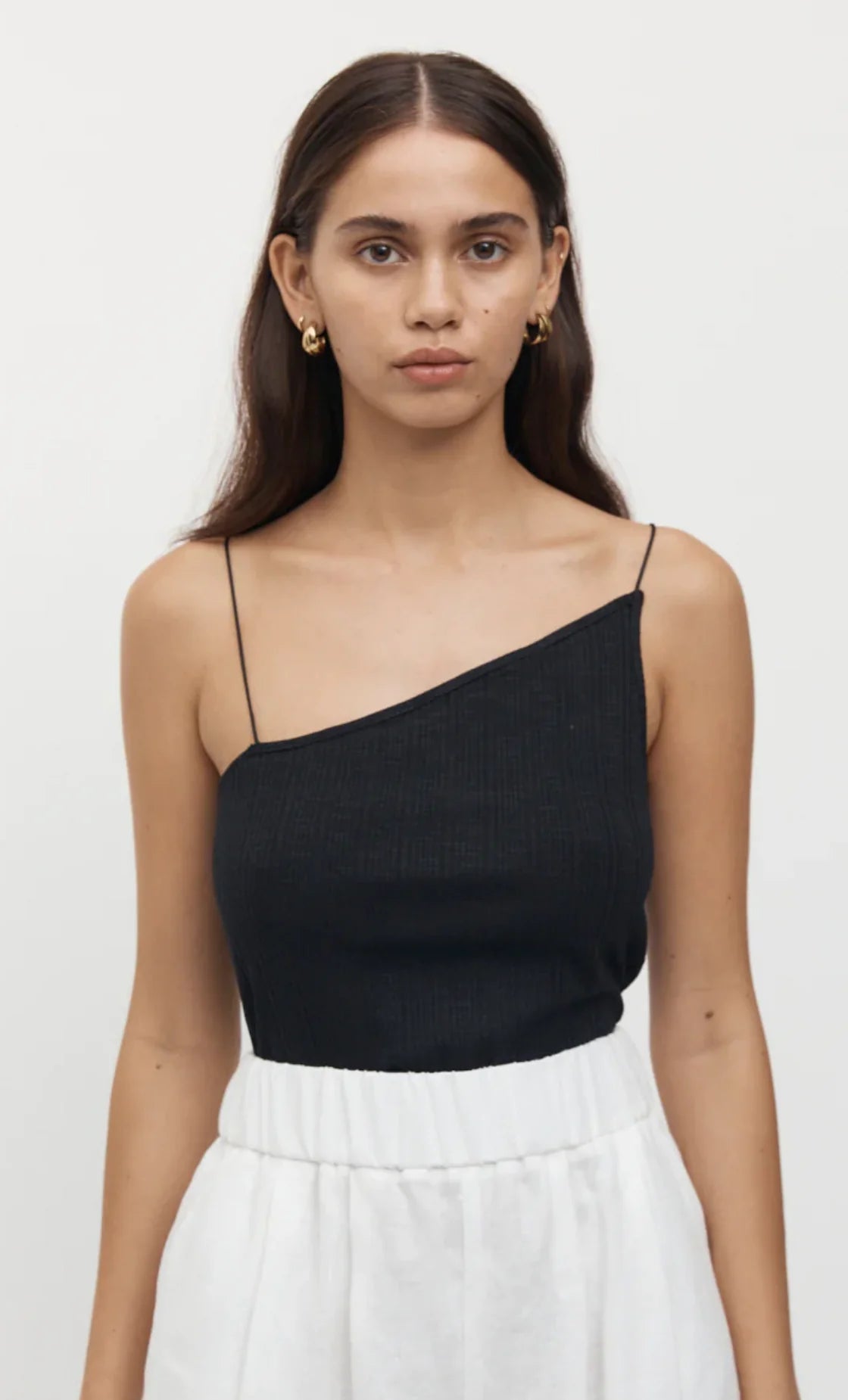 A ribbed cotton singlet, designed in a slim fit. Featuring an asymmetric neck and thin straps.