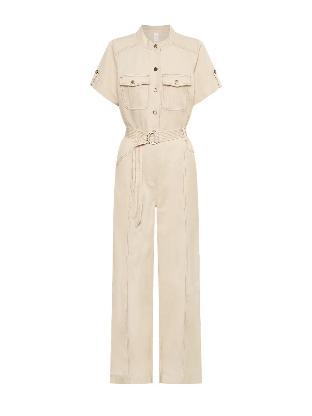 The Gianna Jumpsuit is a feminine take on utility in an ivory hue. Crafted from a cotton-tencel blend, the Gianna Jumpsuit features a button through bodice, front and side leg patch pockets, short sleeves, complete with a removable signature D-Ring belt.