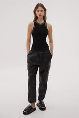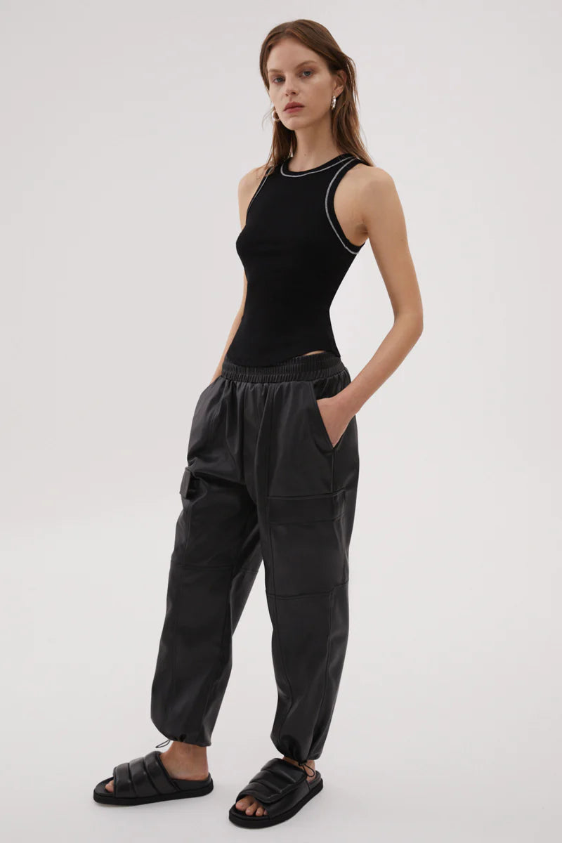 Say hello to Eilian, the elevated jogger. Crafted in faux leather, with patch pocket features at the sides of the leg, Eilian is a smart utilitarian addition to your wardrobe. Pair this jogger back with a classic rib tank or knitted jumper before heading to your weekend errands.