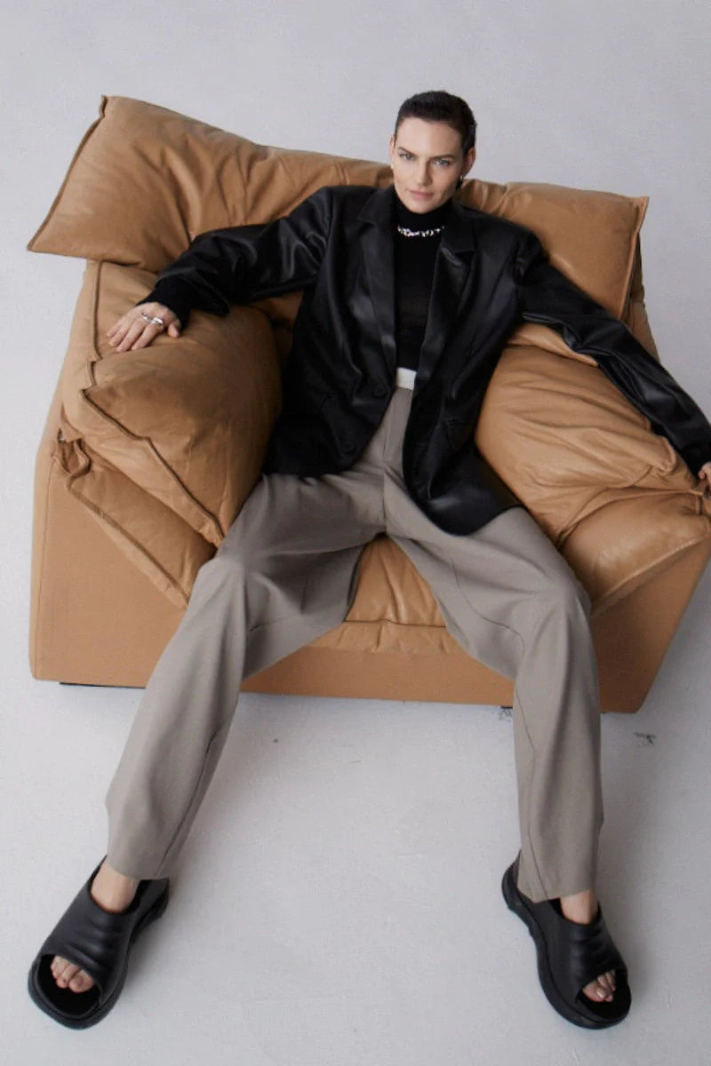 The Finn Oversized Blazer from Misha Urban is a vegan leather jacket which combines a relaxed oversized shape with structured shoulders. In classic black, Finn is a timeless and versatile addition to your wardrobe.