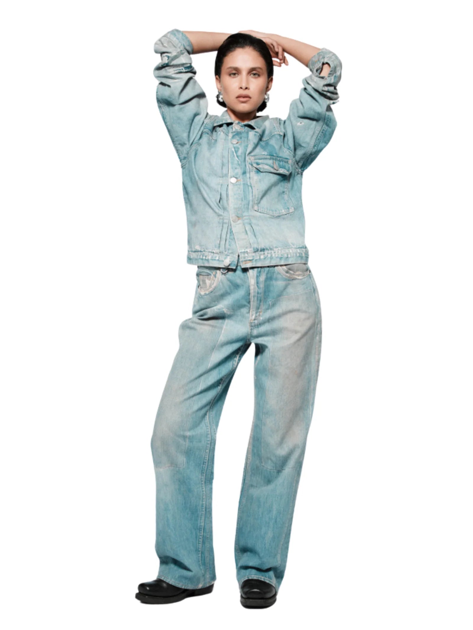 The Coco Relaxed Jean offers a high-rise waist and an open top block, giving the wearer the freedom to personalise the fit. The Digital Print on the denim lends to a distressed look (with absolutely no distressing as it is a digital print - clever!), and is finished with a Light Vintage Indigo Wash.