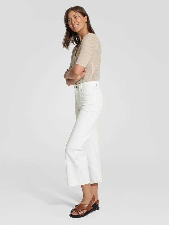 Accentuate the leg with Texture Jean, Textured. Featuring a flattering high-rise waist and wide-leg profile, resembling authentic 70's era denim. The Corduroy Pockets add a subtle difference to an otherwise classic white jean. Finishing at an ankle length and crafted from authentic rigid denim, pair back with the Ingrid Top for a contemporary take on a neutral ensemble.