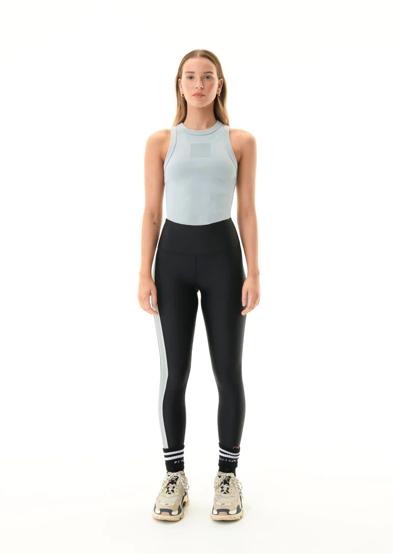 The Arcade Tank in High Rise comes as part of our Varsity Muse Collection, a full out homage to 90s sportswear, focusing on baggy silhouettes, collegiate prints and nostalgia-driven aesthetic. A fitted fashion tank with slight cropped silhouette, the Arcade is cut from heavyweight organic cotton for a structured feel. Crew neck and self binding through neck and armholes create a neat aesthetic. P.E Nation flat rubber logo print at centre front provides signature branding.