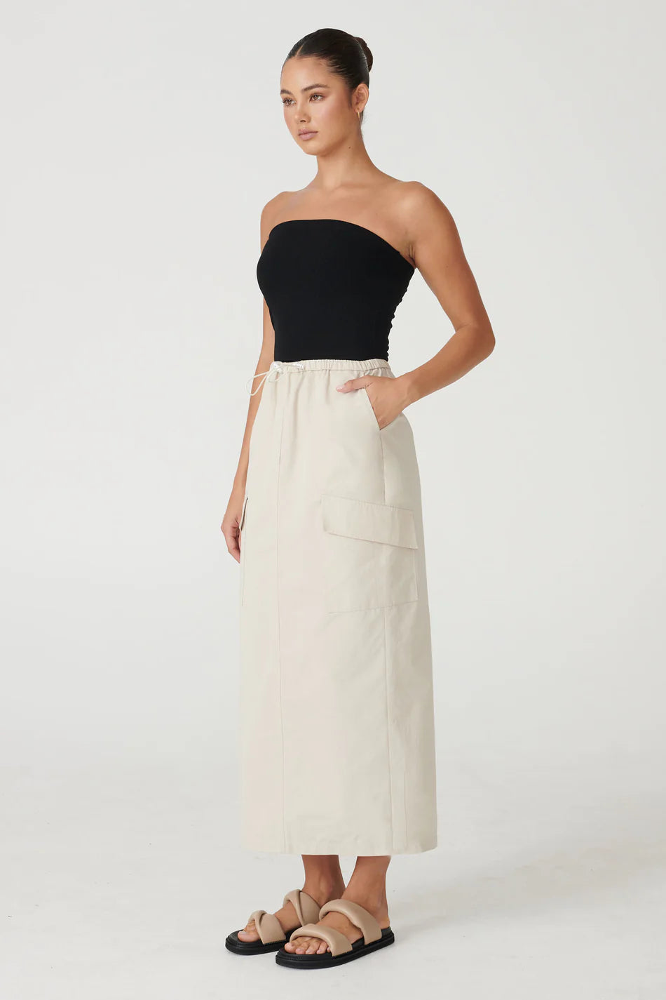 Styled with the Esme Cargo Skirt and Paris Slides (all items available from Elysian Collective).