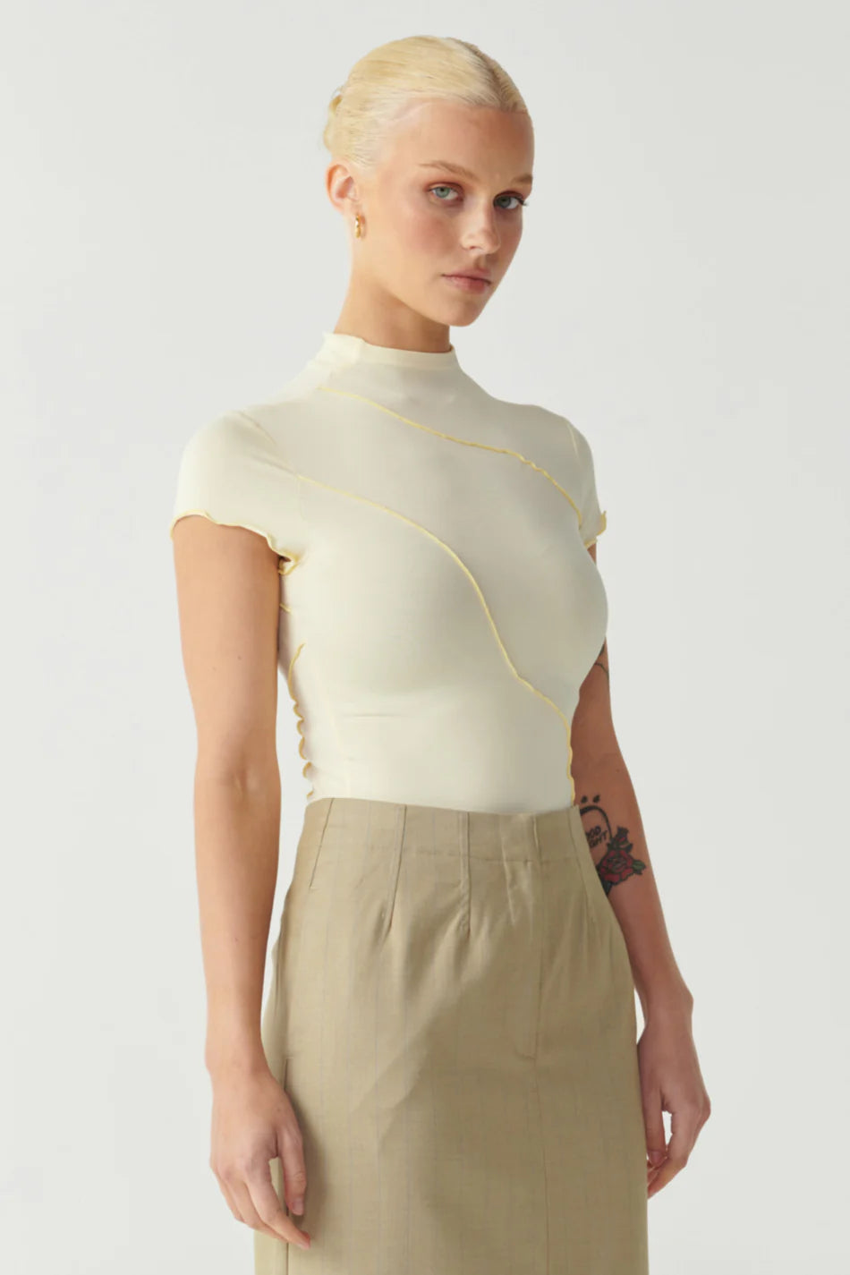 RAEF THE LABEL - LANEY PANELLED SHORT SLEEVE TOP (BUTTER)