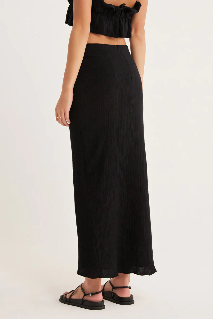 Rumer's Mirage Skirt in Black adds a contemporary take to elevated mix-and-match pieces. We love this paired with the matching Enigma Crop.