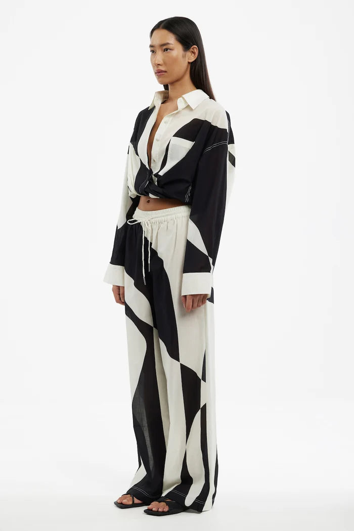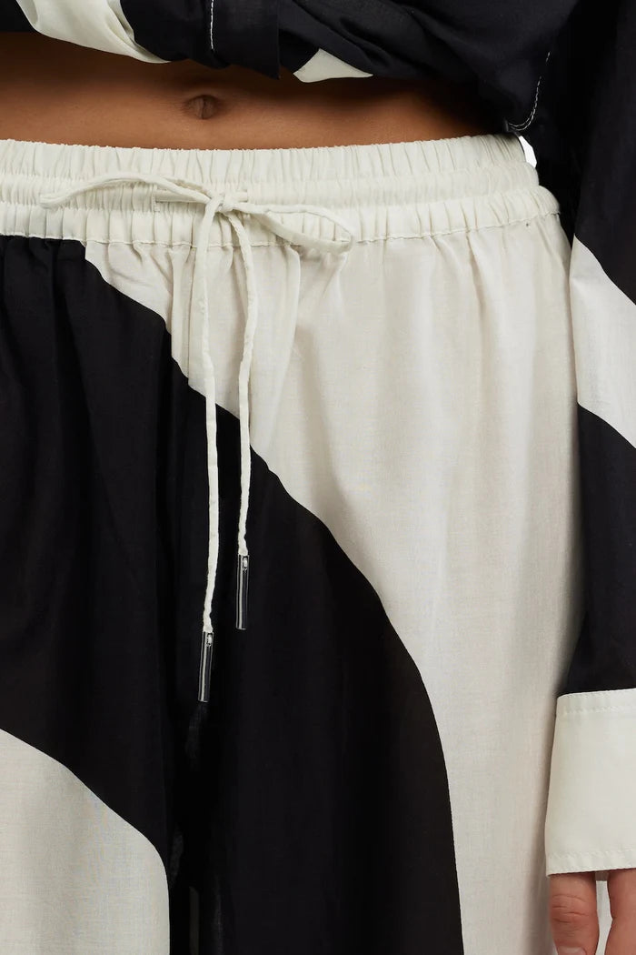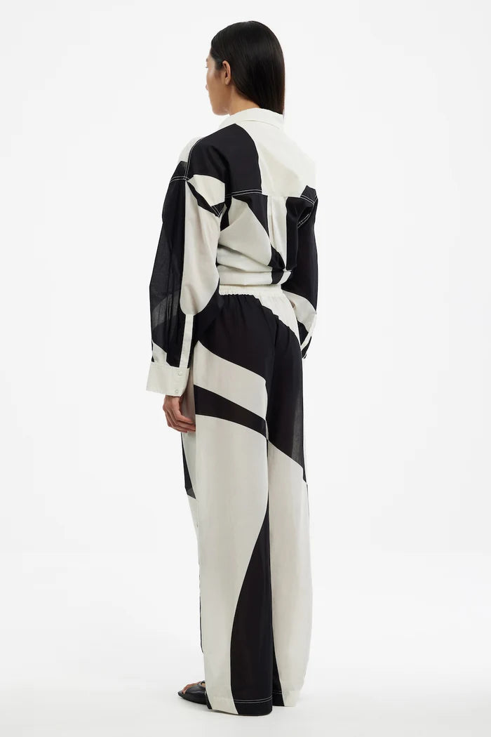 The Parker Pant in Monochrome Drip offers relaxed sophistication with its flowing silhouette and bold print. Made from lightweight cotton with an elasticated waist, these unlined pants are both breathable and versatile. This pant is ideal for beach days or dressy casual evenings.