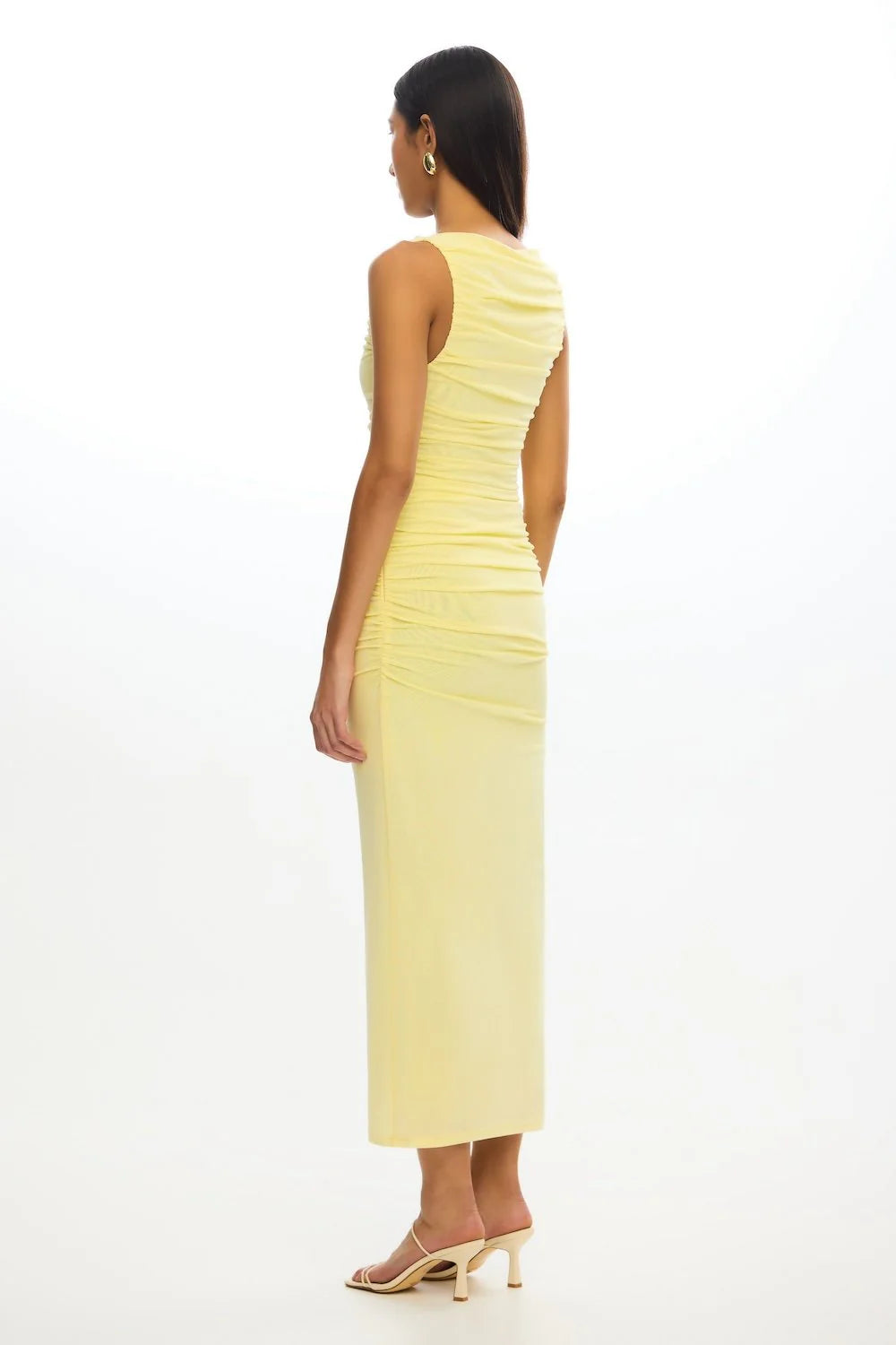 The Whitney Midi Dress in Butter is made for easy, standout styling. Made with a bold block colour and ruched side seams, this sleeveless midi is all about effortless edge. Fully lined for comfort, it's perfect for nights out or laid-back events.