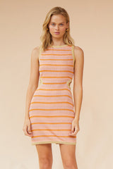 SUBOO - Biba High Neck Cut Out Mini Dress (Peach Stripe)